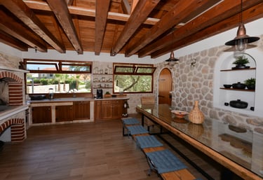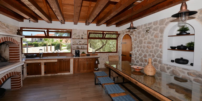 Die Villa verfügt über ein geräumiges Wohnzimmer, zwei Küchen (eine davon mit Frühstücksbar) und zwei Grills für Mahlzeiten im Freien. Ein Pizzaofen steht Ihnen ebenfalls zur Verfügung – perfekt für gesellige Abende. Das Anwesen bietet einen schönen Swimmingpool und einen Garten, der zum Genießen des mediterranen Klimas einlädt. Nur 10 Meter vom Meer entfernt, bietet die Villa direkten Strandzugang und einen Bootsanleger in nur 15 Metern Entfernung.
